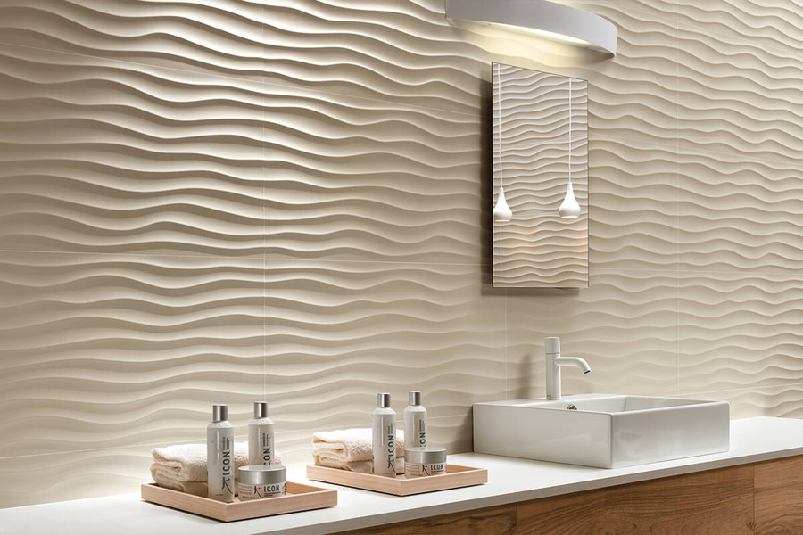 Под любое настроение можно подобрать подходящий вариант. Для того, чтобы понять, как плитка будет выглядеть на стене, рекомендуется посмотреть на поверхность при дневном и вечернем (приглушенном) освещении. Серия 3D White Wall предлагает плитки в 3 размерах (в см): 50x110, 40x80 или 30,5x56. При желании их можно комбинировать, чтобы создать необычный эффект или выложить нестандартное изображение. Для создания дизайна можно выбрать один из нескольких вариантов рисунка на поверхности плитки: геометрия, орнамент, крупные волны, имитация кладки кирпича (подойдет, например, для помещений в стиле лофт). Имеется также мозаичное полотно (30,5x30,5 см). Поверхность изделия представлена в двух видах – гладкая или рельефная. Уход за изделием простой и легкий. Требуется регулярно протирать поверхность мягкой тряпкой или губкой. Можно использовать специальные чистящие средства в виде крема или геля.